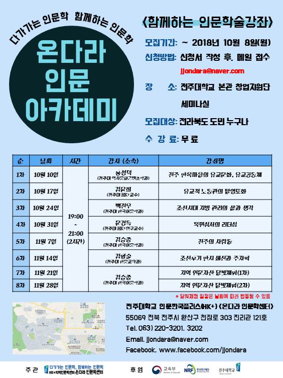 함께하는 학술강좌 「온다라 인문 아카데미」 2차(2018. 10. 17.) -