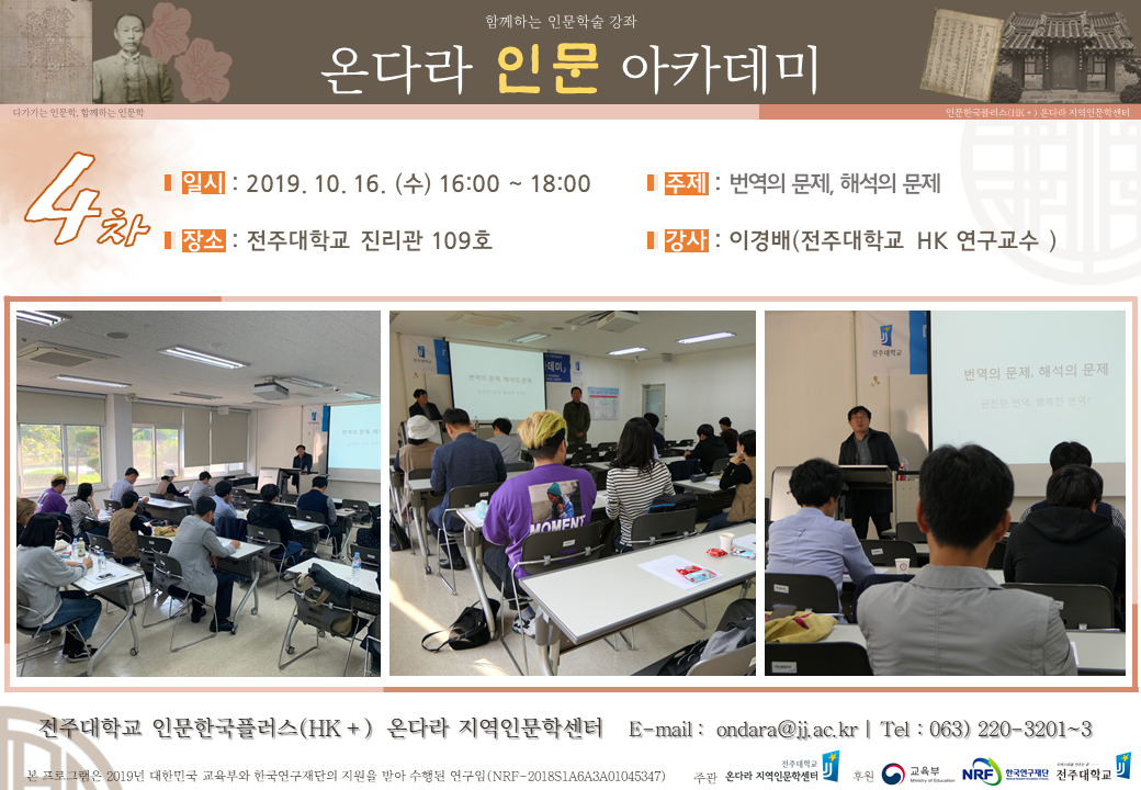 함께하는 인문학술강좌 『온다라 인문 아카데미』 4차 (2019. 10. 16.)