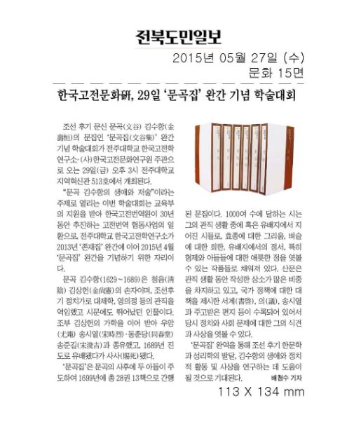 문곡집 완간 학술대회 관련 사전 신문 기사 2015.05.27
