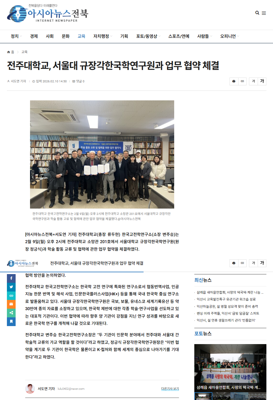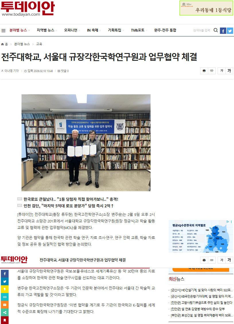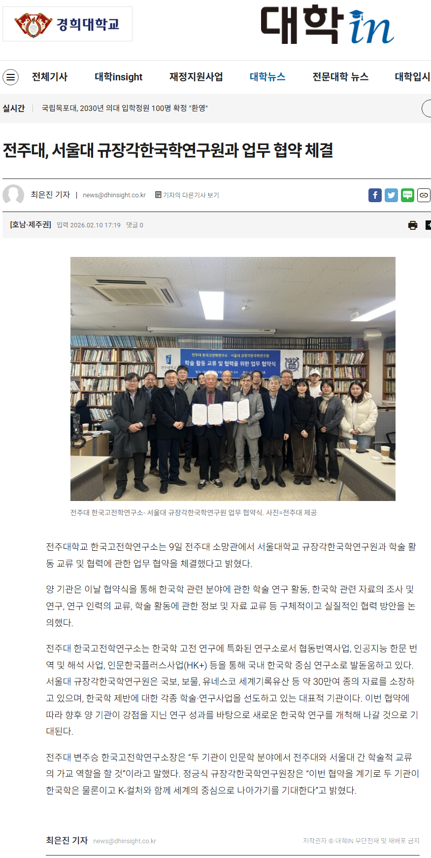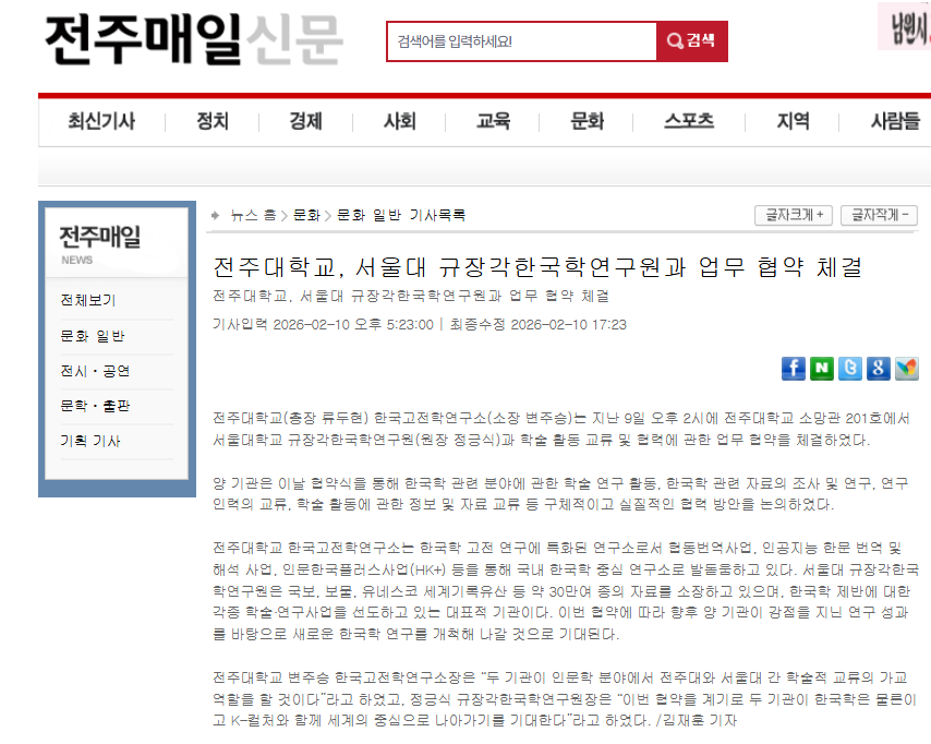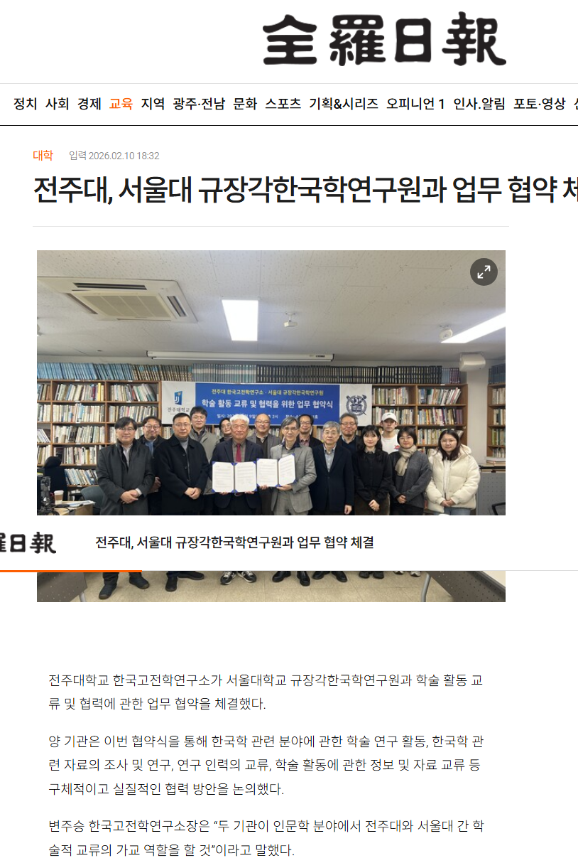 | [학술교류] 한국고전학연구소-서울대 규장각한국학연구원 MOU 체결 보도자료 |