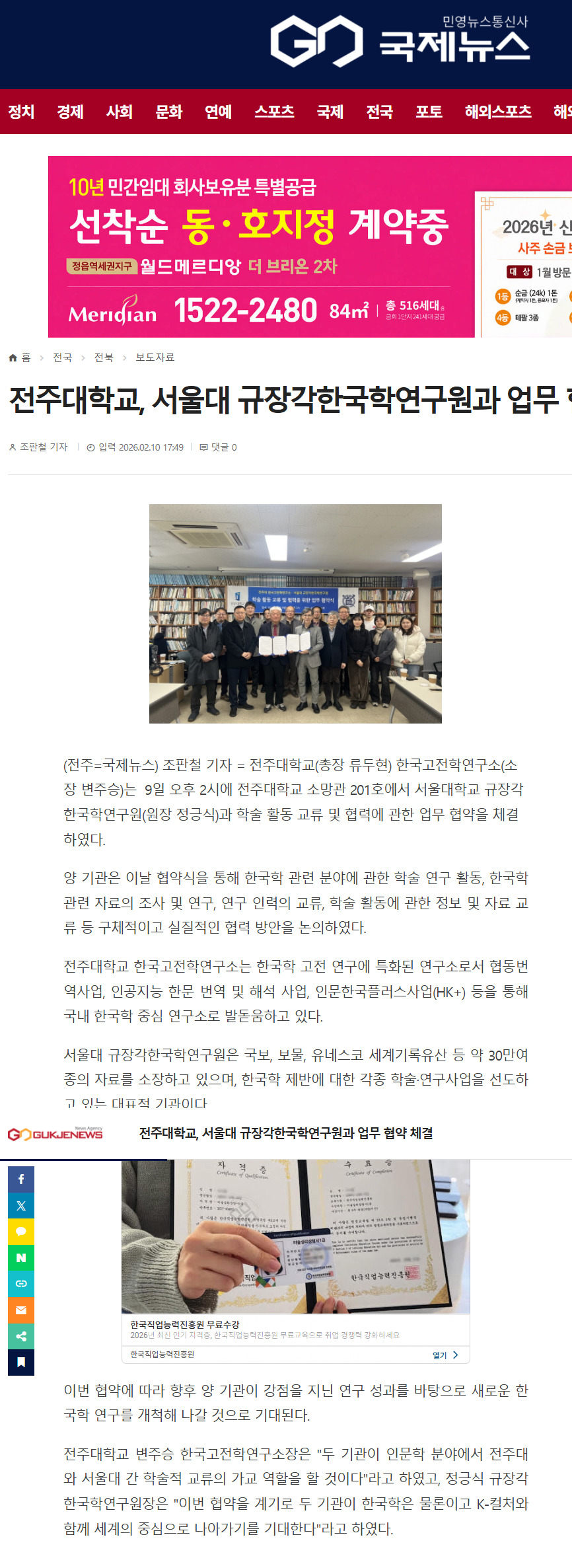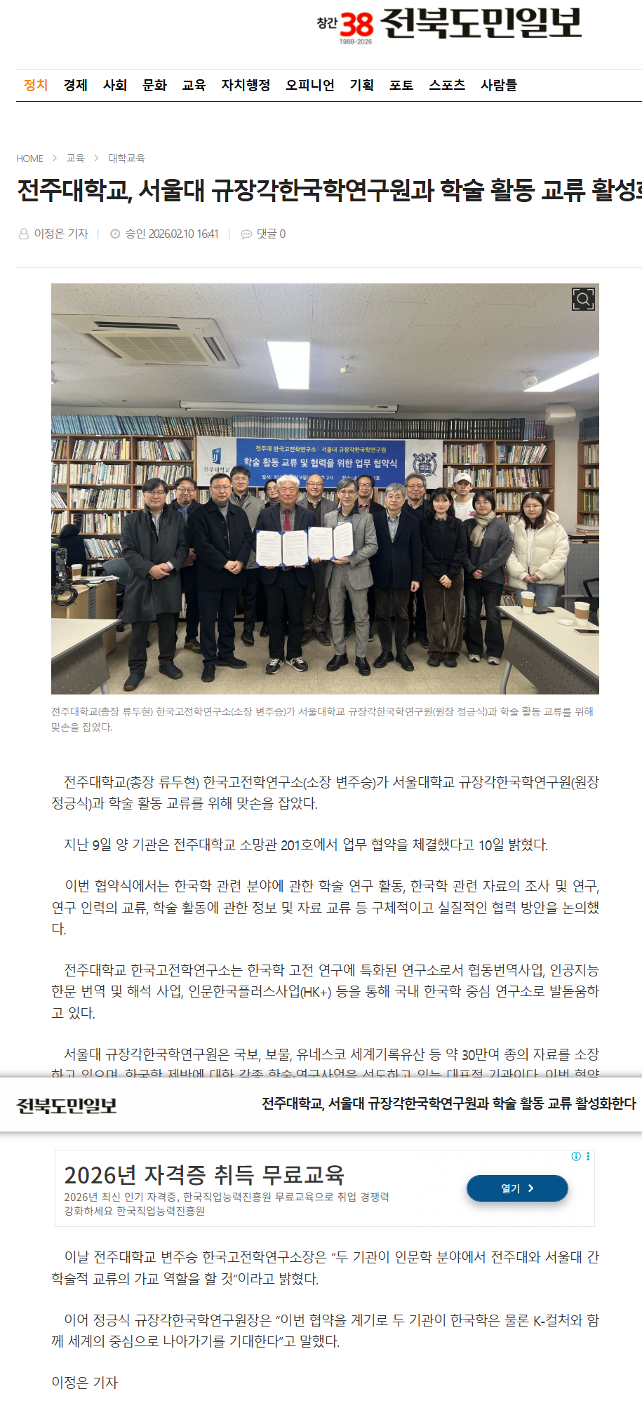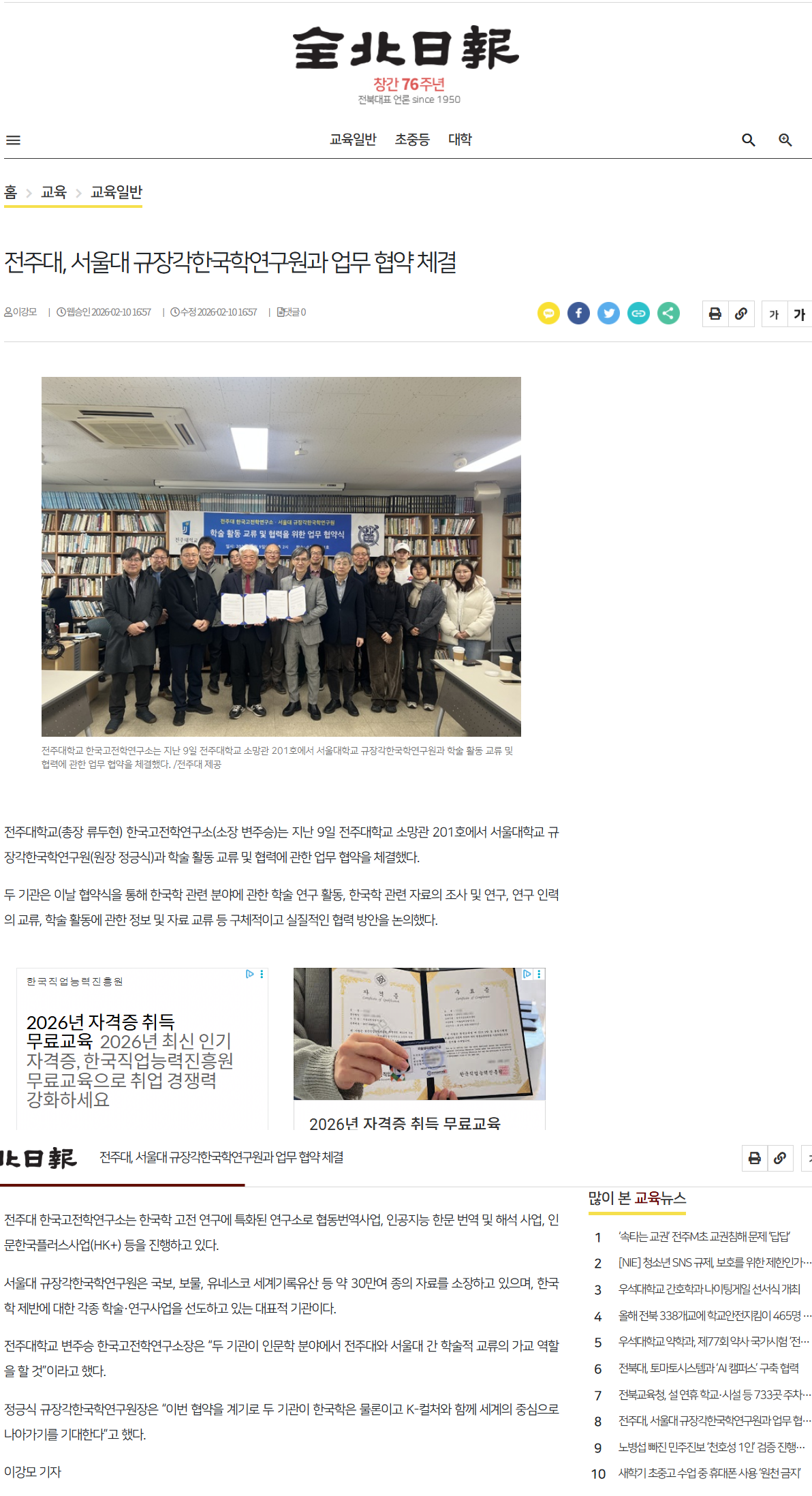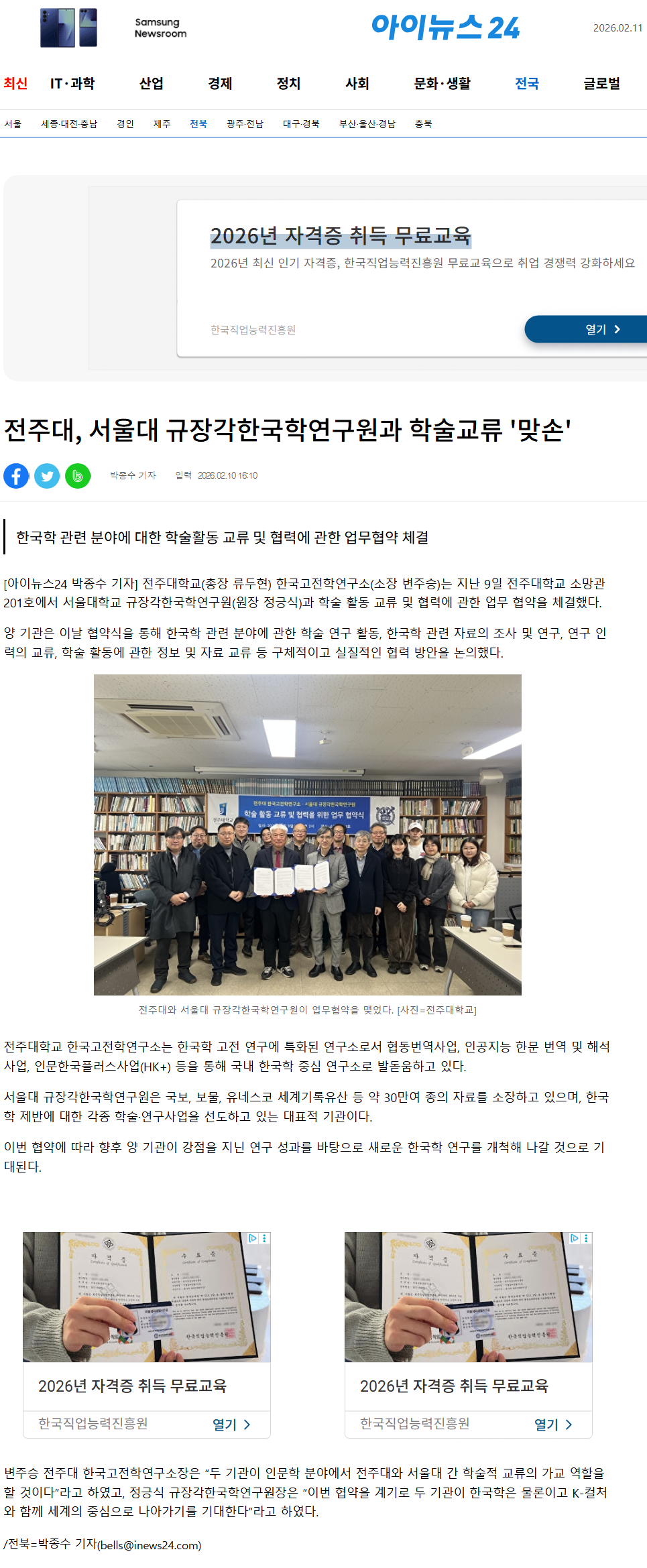 | [학술교류] 한국고전학연구소-서울대 규장각한국학연구원 MOU 체결 보도자료 |