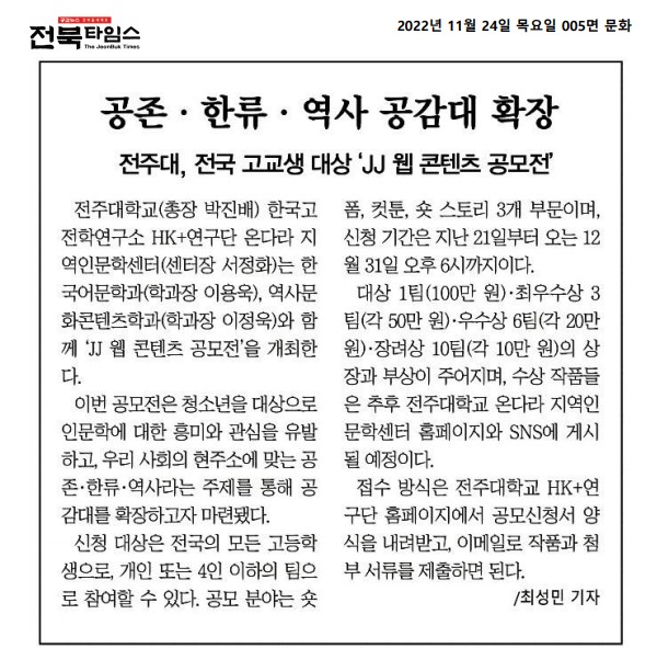 | 651 | 기타 | 공존·한류·역사 공감대 확장 | 온다라 지역인문학센터 | 23-01-17 | 284 |