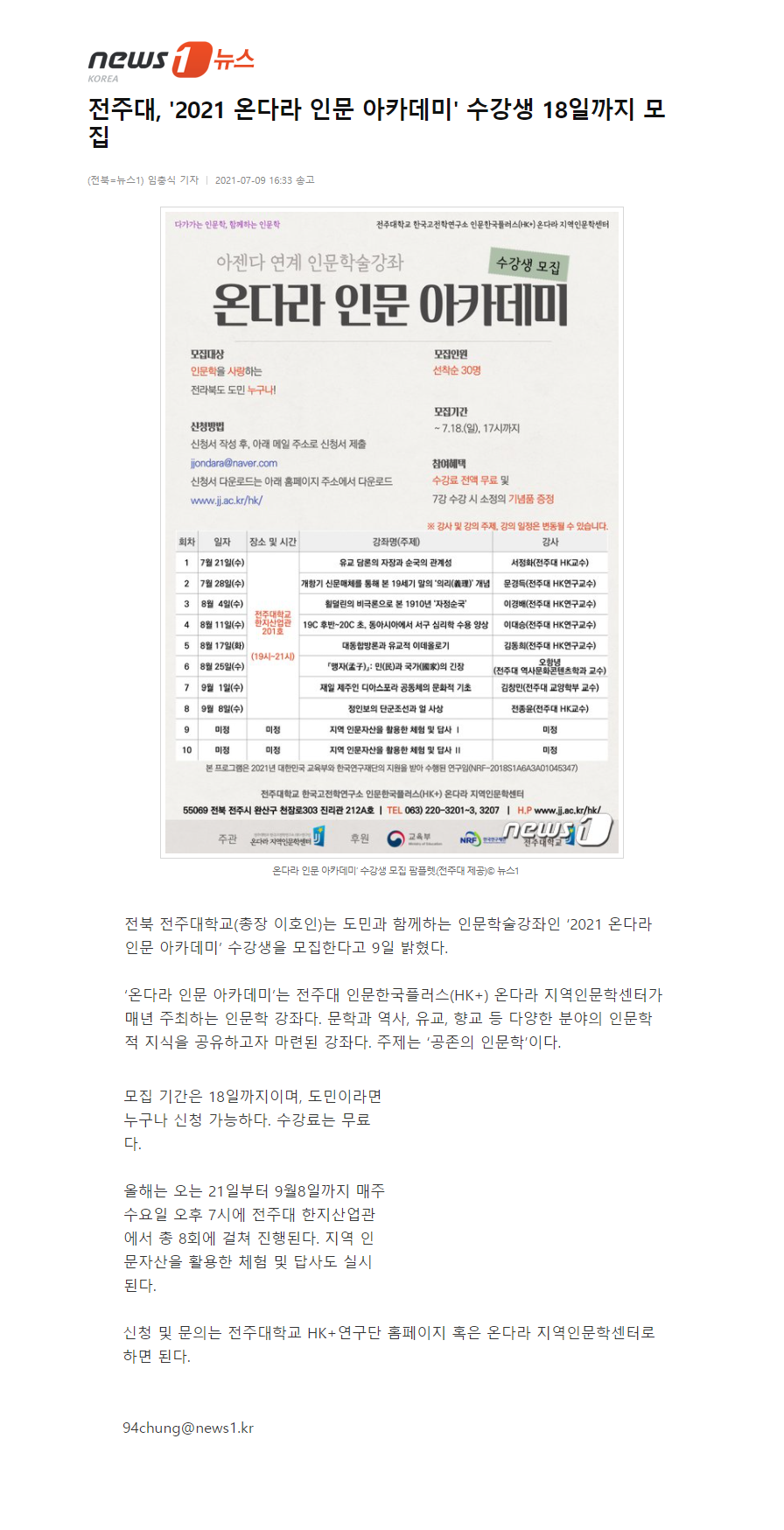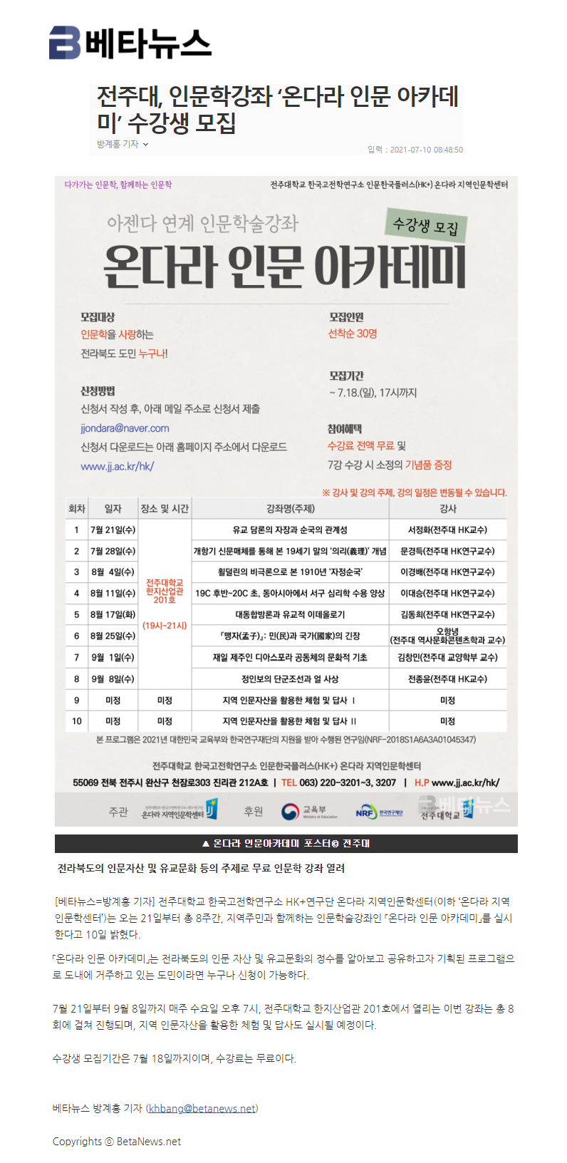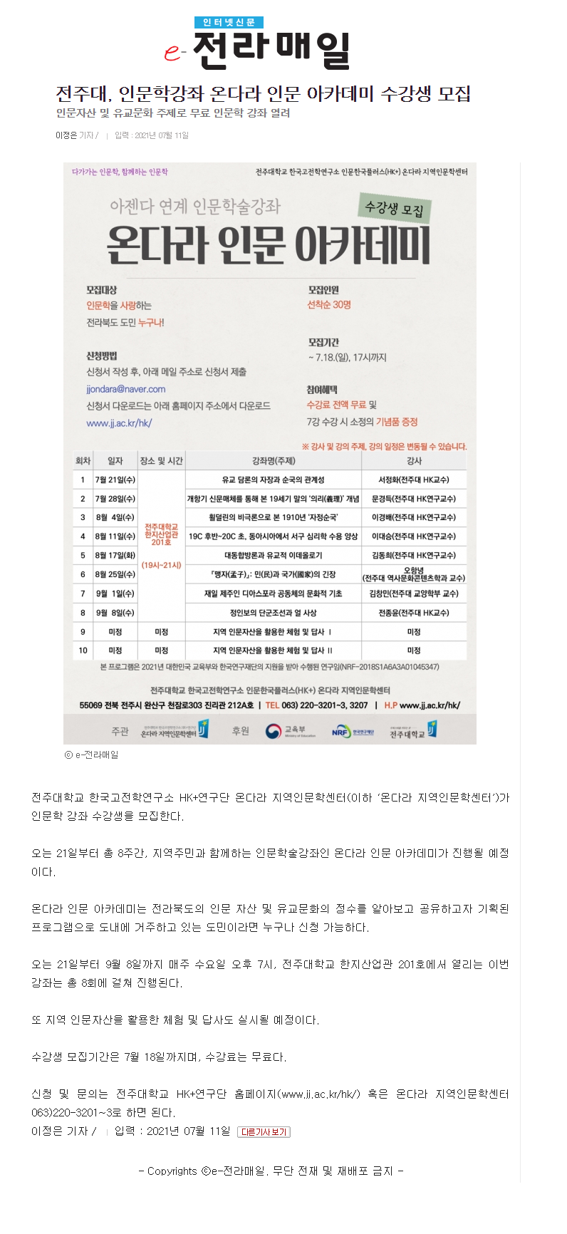 386 기타 전주대, 인문학강좌 온다라 인문 아카데미 수강생 모집 온다라 지역인문학센터 21-07-14 215   210711_전주대, 인문학강좌 온다라 인문 아카데미 수강생 모집_e-전라매일.png
