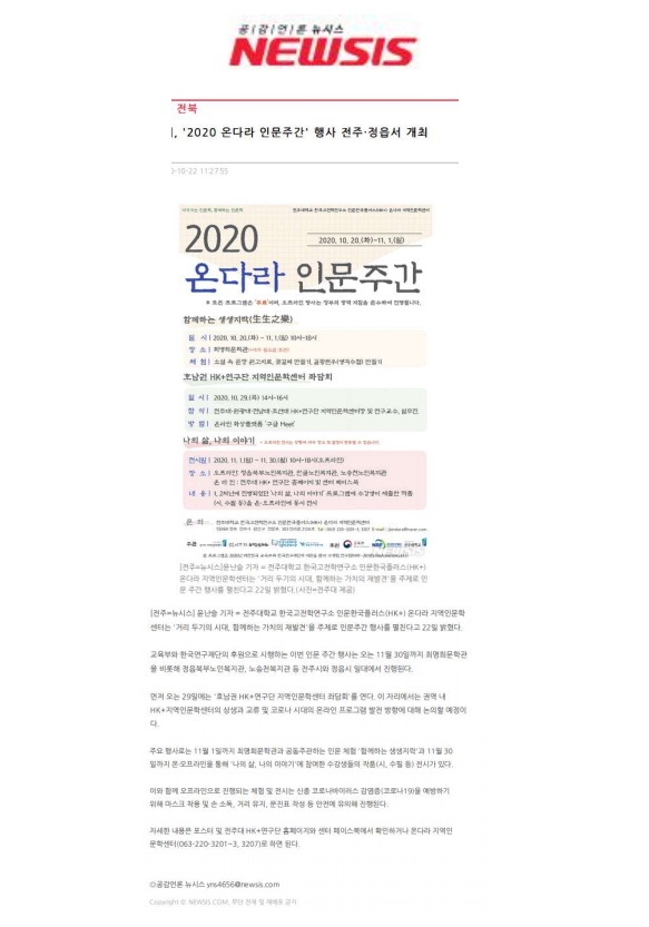 307 기타 전주대, ‘2020 온다라 인문주간’ 행사 진행 온다라 지역인문학센터 20-11-10 200   201105_전주대, ‘2020 온다라 인문주간’ 행사 진행_아시아뉴스통신.png