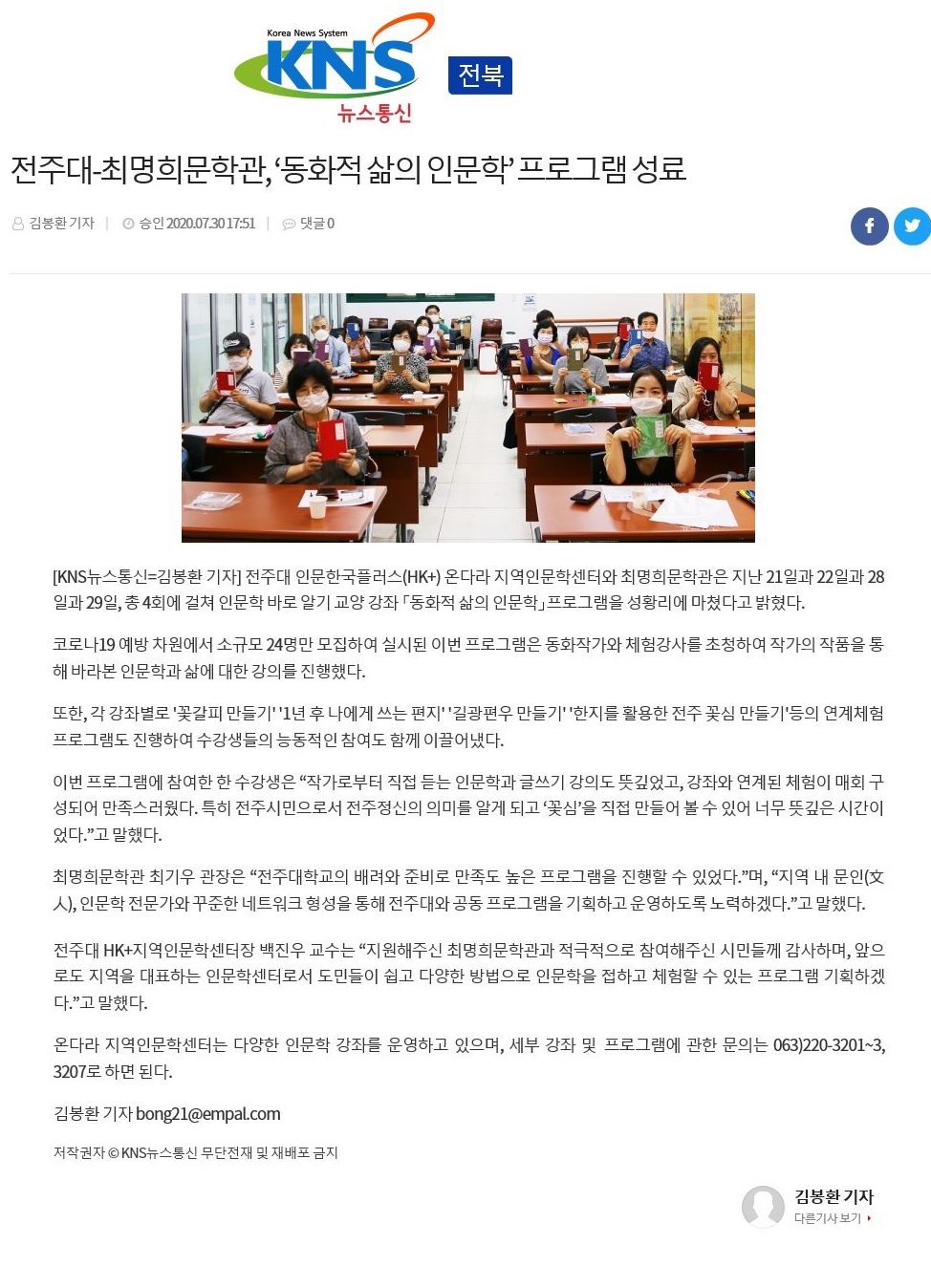 | 290 | 기타 | 전주대-최명희문학관 '동화적 삶의 인문학' 프로그램 성황리 마감 | 온다라 지역인문학센터 | 20-08-03 | 219 |