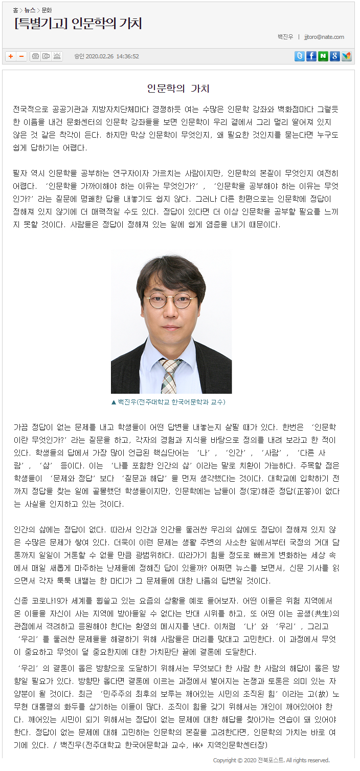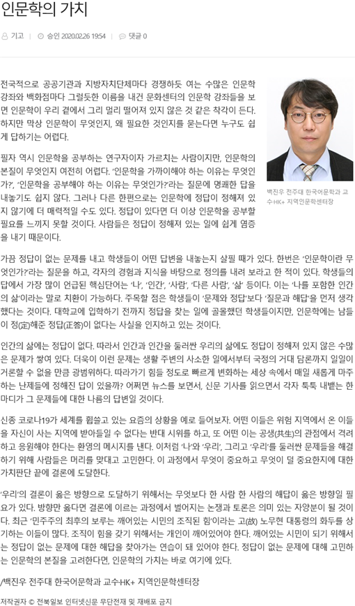 [특별기고]인문학의 가치_전북포스트