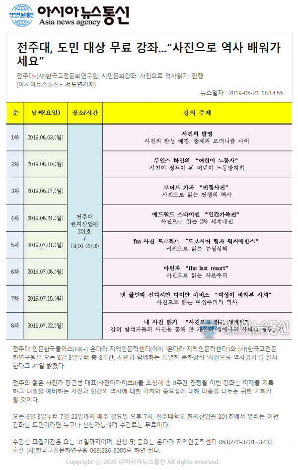 [전주대]도민 대상 무료 강좌 ‘사진으로 역사 배워가세요.’
