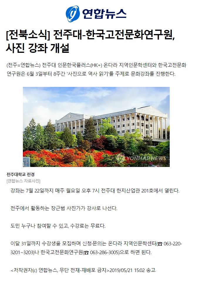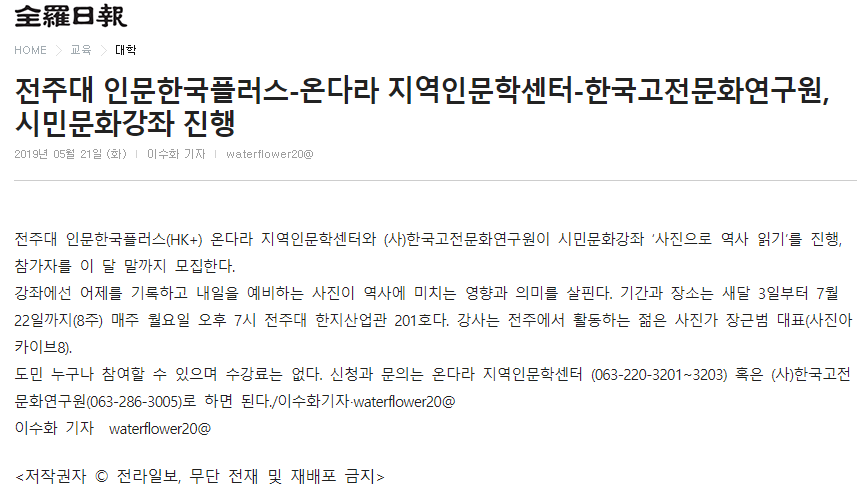 [전북소식] 전주대-한국고전문화연구원, 사진 강좌 개설