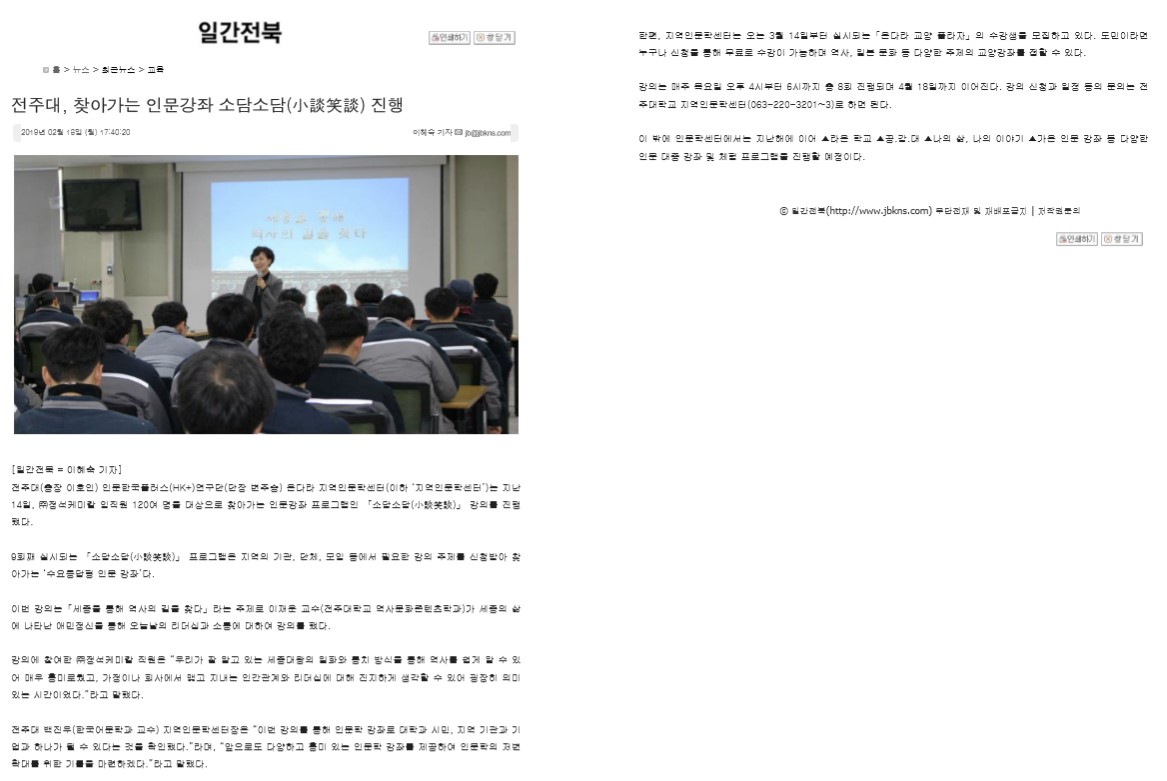125 기타 전주대, 찾아가는 인문강좌 소담소담(小談笑談) 진행 온다라 지역인문학센터 19-08-11 219   190218_전주대, 찾아가는 인문강좌 소담소담(小談笑談) 진행_일간전북.jpg