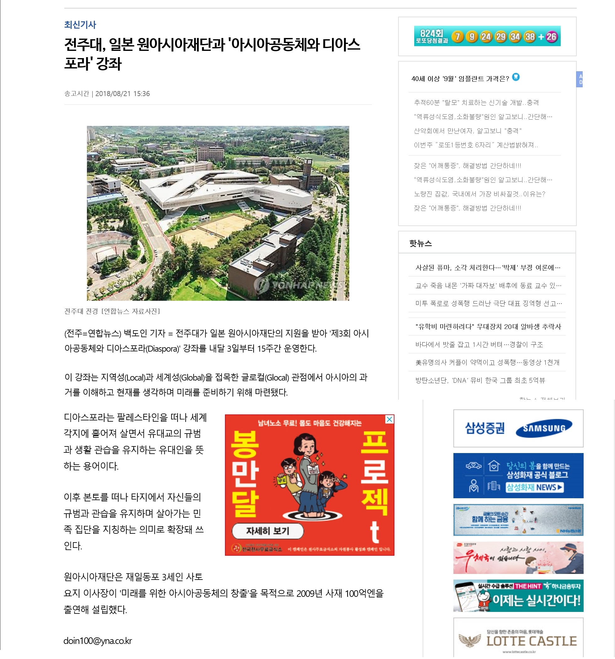 | 19 | 기타 | 원아시아재단 강좌 '아시아공동체와 디아스포라(Ⅲ)' 언론보도자료 | 한국고전학연구소 | 18-09-20 | 601 |