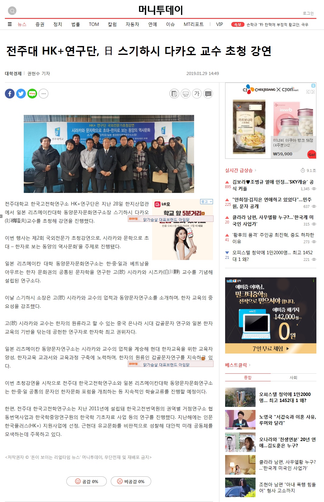한국고전학연구소 HK+연구단 日 스기하시 다카오 교수 초청강연 언론보도자료