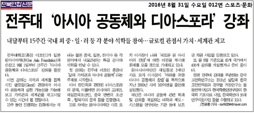 원 아시아 재단 지원 강좌 "아시아 공동체와 디아스포라" 신문보도자료