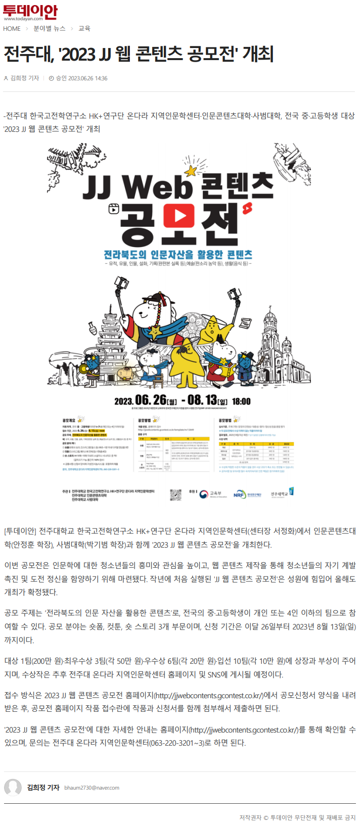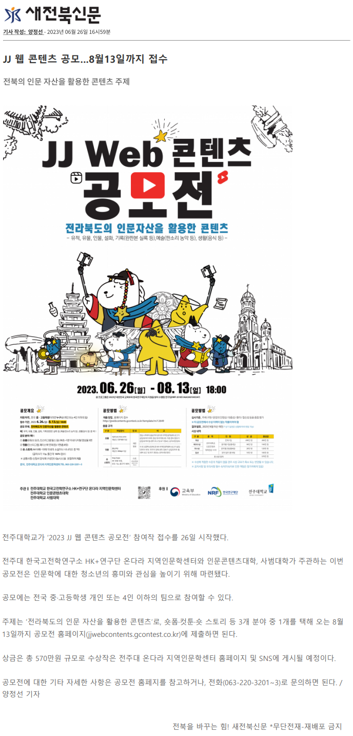 JJ 웹 콘텐츠 공모… 8월 13일까지 접수